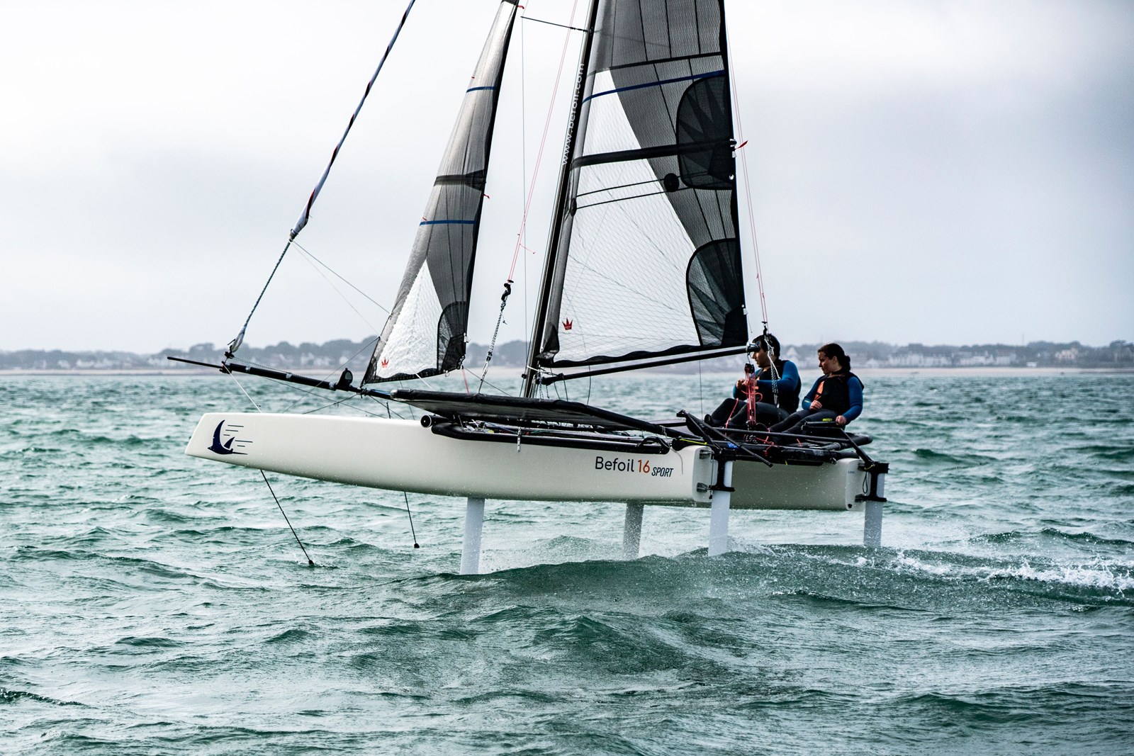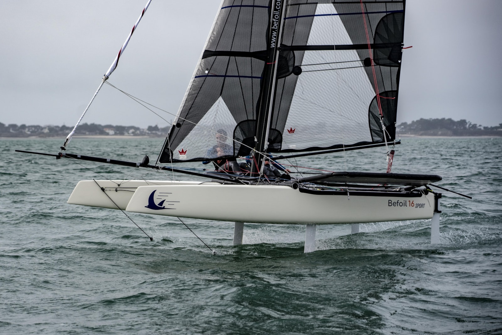 Met zijn zelfregulerende T-foils en zijn 2 dragende roeren en glas/epoxy rompen, is de Befoil 16 Sport de nieuwste aanwinst in de Befoil-reeks. In sport mode, of in comfort mode geeft de Befoil 16 Sport een groot gevoel van snelheid. De boot kan tot 20 knopen halen.