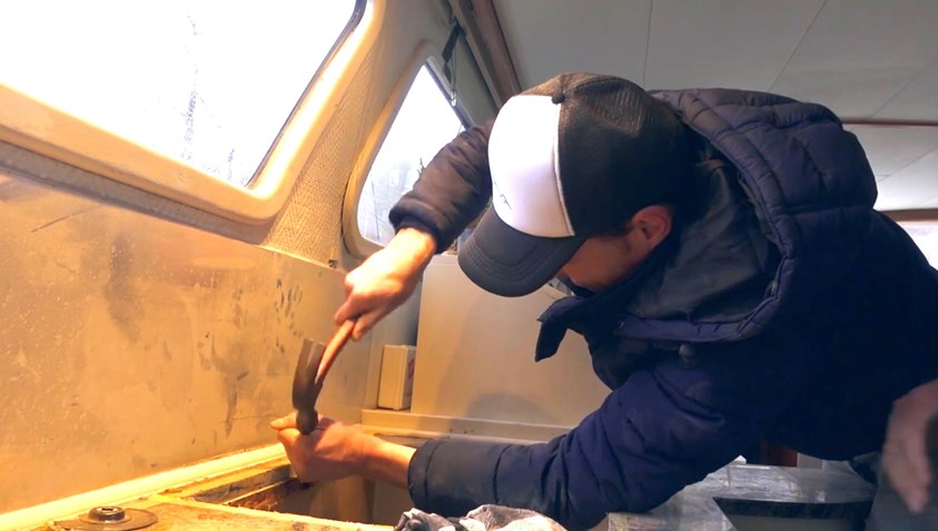 ’’Met mijn vader heb ik het aanrecht en de gootsteen gemonteerd. Dat was een heel gedoe want we moesten het gat in het aanrecht vergroten om het passend te krijgen. Een dat is een flinke uitdaging om in marmer te zagen. Een grote stofbende werd het, werkelijk alles zat onder het stof. Maatje Patrick kwam ook nog even langs met voorbeeldjes van wrapfolie die ik op mijn aanrecht wil plakken om het weer modern en strak te krijgen. Best moeilijk kiezen! En mijn technische hulplijn Thijs heeft de nieuwe dieselheater geinstalleerd, maar dat zie je in de volgende vlog! Ook ben ik bezig om te kijken of dubbelglas een uitkomst voor mijn vochtprobleem kan bieden. Een flinke investering maar, wil wel serieus kijken naar die optie,’’ aldus Kees die inmiddels is ingesneeuwd aan boord van zijn schip. Maar ook dat zien we volgende week.