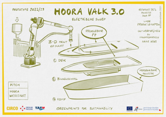 HEEG - Eva Meijer van Hoora Watersport in Heeg heeft met haar idee voor een elektrische circulaire sloep, de ‘Hoora 3.0,’ de eerste prijs en een stimuleringsbijdrage van € 10.000 gewonnen.