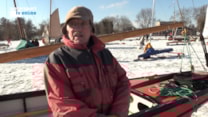 Monnickendam- IJs en een goede wind. Dat hebben ijszeilers nodig om hun rakken te kunnen zeilen. Vaak als het vriest en mooi winterweer is, laat de wind verstek gaan. De ijszeilers op de Gouwzee bij Monnickendam waren vrijdag dan ook in hun nopjes dat er dit keer wel wind stond. Misschien zelfs iets te veel van het goede. Watersport-TV sprak met enkele bikkels en zeilde ook nog even mee met Ron Azier van de ijszeilvereniging Braassem over de hobbelige Gouwzee.