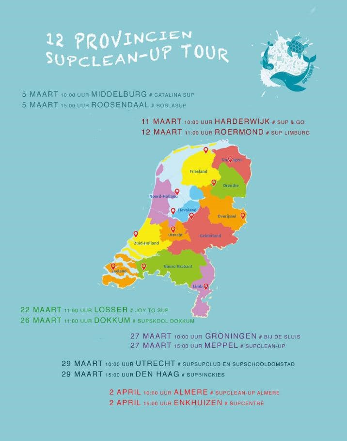 De SUPclean-up Tour start op 5 maart om 10.00 uur in Middelburg. In de middag zijn de suppers in Roosendaal actief. Zie voor het overige programma de routekaart.
