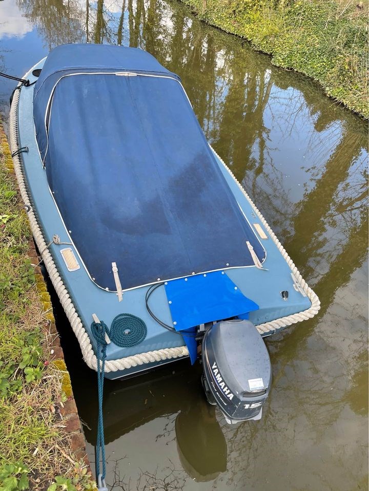 De Yamaha 15 pk 4-takt motor heeft vorig jaar een beurt gehad. Hierbij is onder meer de impeller vervangen. Vaarbewijs vrij. Vorig jaar eveneens de kap laten voorzien van nieuwe stiksels en ramen. Tevens een uitritsbaar voorruit laten instikken. Kap destijds ook opnieuw geïmpregneerd. Boot is eventueel ook te krijgen met een kiep kantel trailer. Motor is niet los te koop.