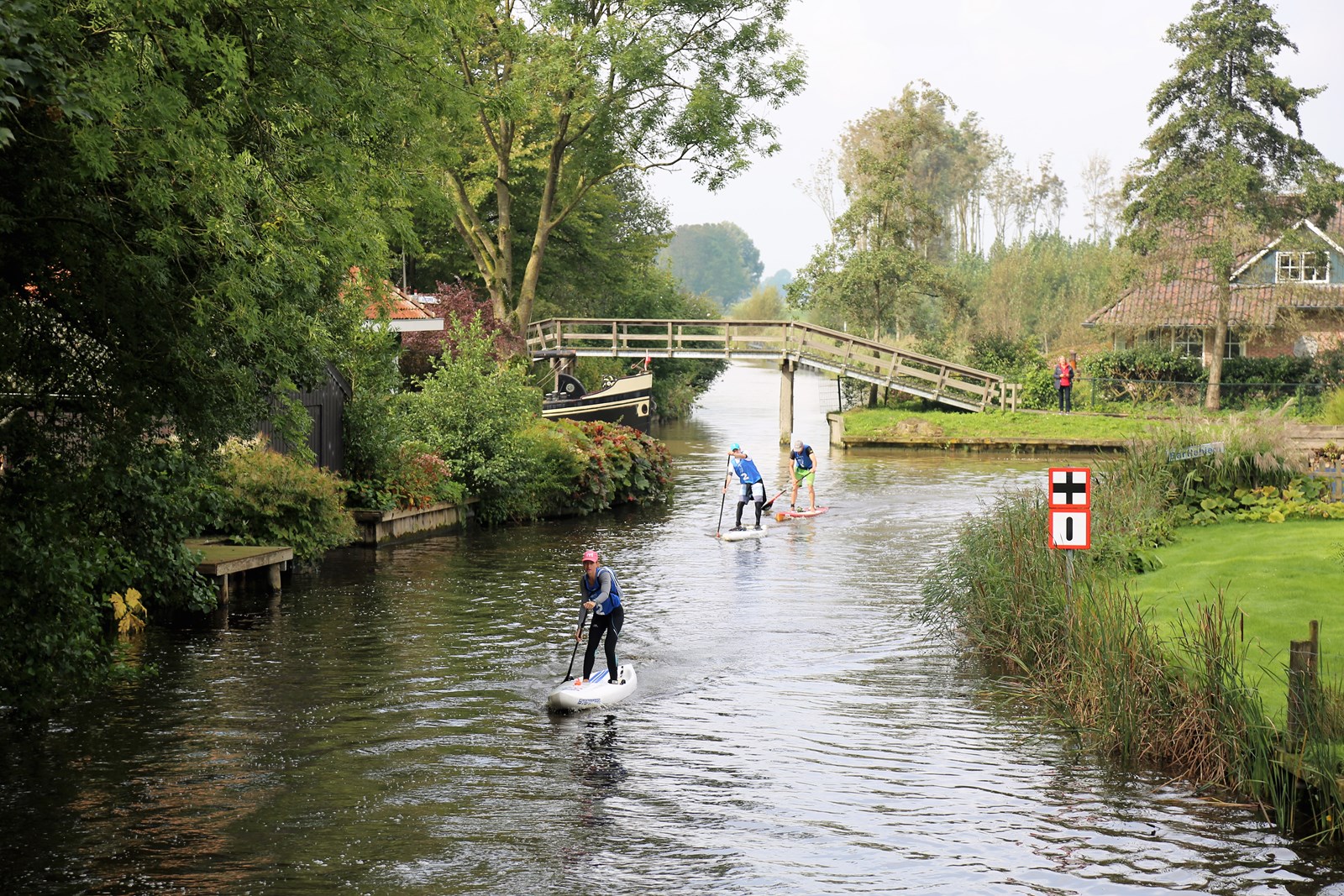 Weet wat er om je heen vaart en houd rekening met de snelheid van andere vaarweggebruikers. Kijk ook regelmatig achterom om te zien of je ‘ingehaald’ wordt. Zo voorkom je verrassingen. Op druk vaarwater met veel golven is het verstandig om op je knieën te gaan zitten.