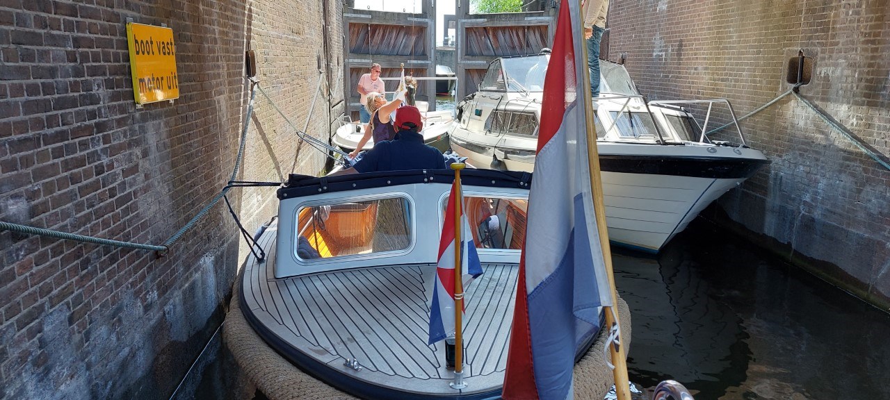 Tip: draag werkhandschoenen in de sluis. Dat is veilig en voorkomt zwarte handen. Ligt de boot veilig tegen de sluiskade, zet dan de motor uit. En zorg altijd voor een scherp mes binnen handbereik, voor het geval een landvast vast komt te zitten. Dan kun je die snel doorsnijden.