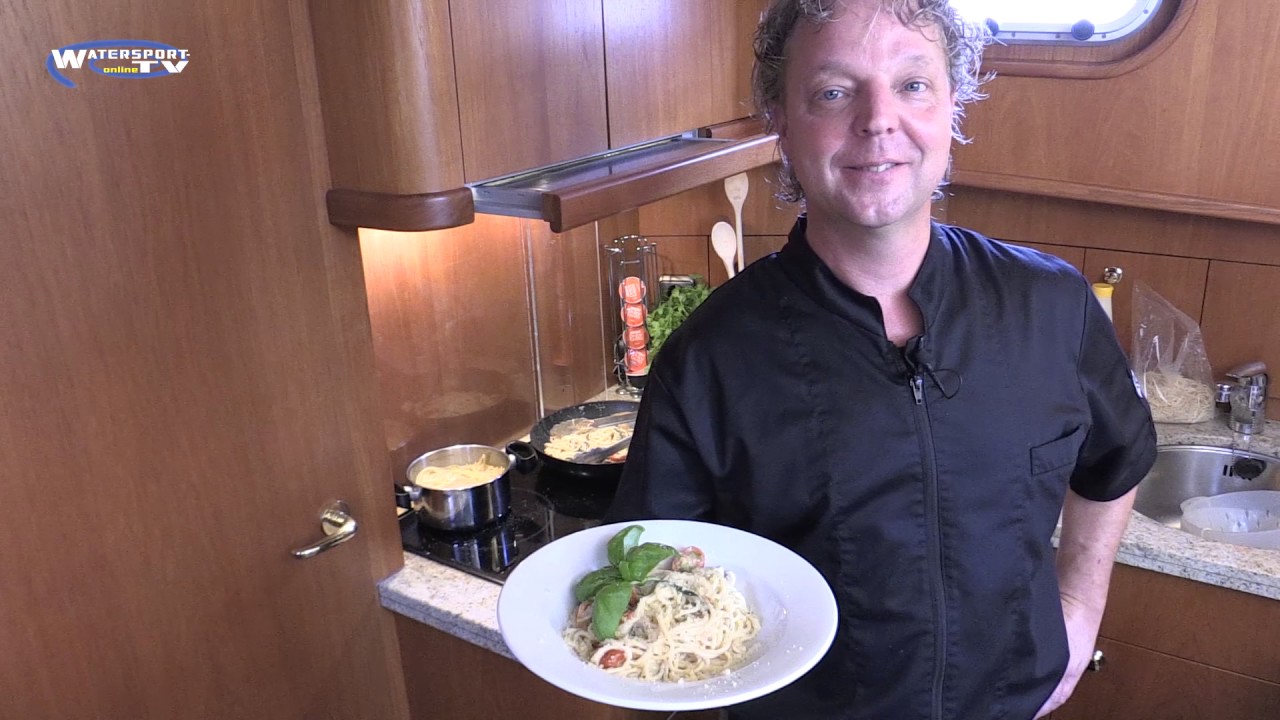 AKERSLOOT- Niemand wil na een mooie dag op het water, lang in de kombuis staan. In de serie Koken aan Boord maakt Watersport-TV chef-kok Hugo Zentveld diverse smaakvolle 5 minuten maaltijden. In deze aflevering is dat een Paalsteek Pasta. Stap voor stap legt hij uit hoe je deze pasta maakt. Handig toch!