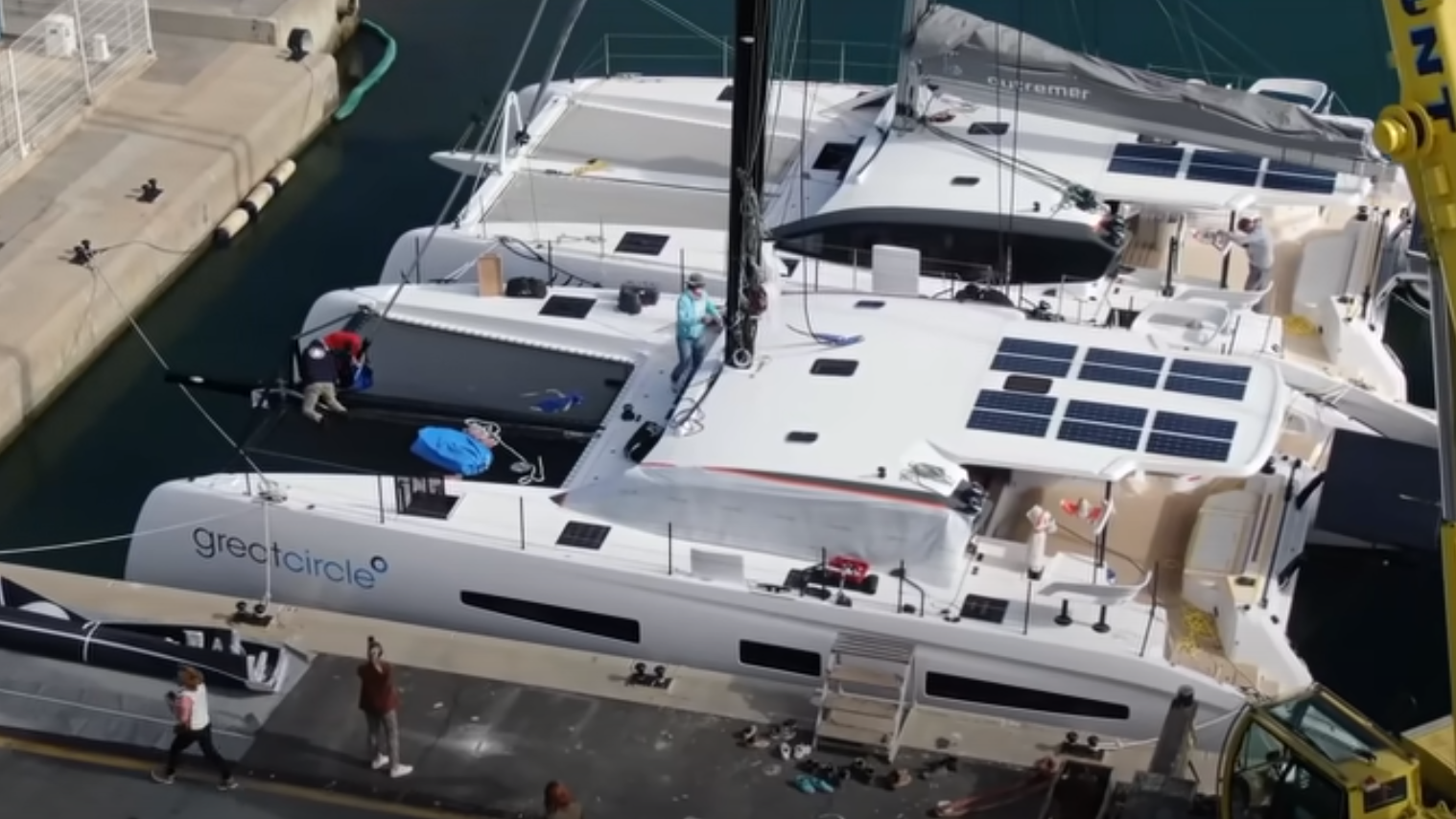 LA GRANDE MOTTE- Na de tewaterlating is het nu tijd om de mast op Great Circle te plaatsen. En dat is een hele operatie waar een team van specialisten en groot materieel voor wordt ingezet. Marijke en Mark, de trotse eigenaren van de Outremer 55 catamaran, volgen alles op de voet. Met hun boot zullen ze deelnemen aan de Grand Large Yachting World Odyssey 500 (GLYWO 500), een zeilrally rond de wereld die begint in september 2021 en eindigt in 2024. Via Watersport-TV kun je de voorbereidingen en deze reis volgen.