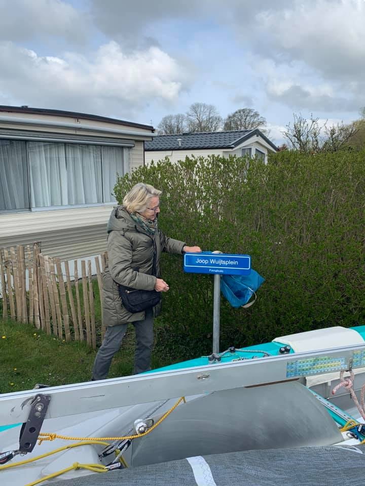 Op de jachthaven in Akersloot hebben de Finnjollen sinds kort een eigen pleintje dat de naam van Joop draagt. Het naambordje werd onlangs onthuld.
