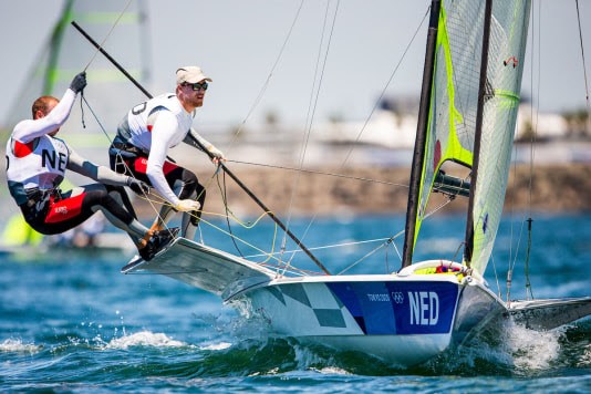 TOKIO- Annemiek Bekkering en Annette Duetz kennen geen vliegende start van hun olympische zeiltoernooi in de 49erFX. Het duo had moeite om aansluiting te vinden. Finnzeiler Nicholas Heiner debuteert op de Spelen en werd vandaag 11e en 5e en staat in het tussenklassement bij de top 5. Bart Lambriex en Pim van Vugt zouden drie races zeilen. Het werd een geldige wedstrijd, waarin ze als 14e over de finish kwamen in de 49er klasse.