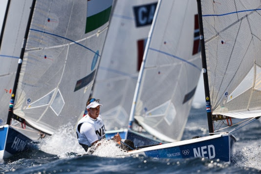 “Afrodite Zegers en Lobke Berkhout hebben het heel zwaar gehad deze week. Ze hebben heel veel energie gestoken in de onderling samenwerking. Dat is ook heel goed gegaan. Dit voorjaar worden ze nog tweede op het WK. Wat er misging in Tokio weet ik nog niet. Ik denk dat ze het zelf ook nog niet weten. Andere teams varen al langer met elkaar en hebben dit ook allemaal moeten doorstaan zoals Annemiek en Annette in de 49erFX. Het heeft tijd nodig. Afrodite en Lobke is het deze week in elk geval niet gelukt.”