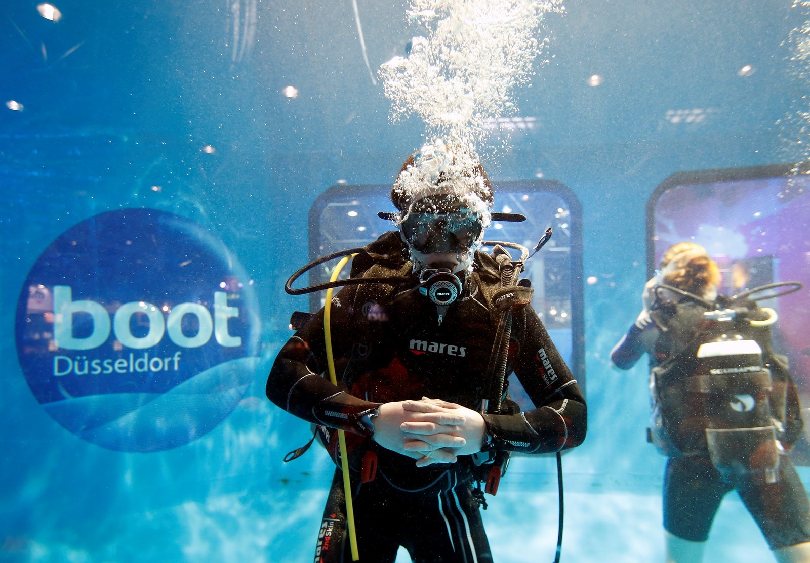 Het middelpunt van de levendige duiksport is hal 12, met de nieuwe duiktoren van vier meter hoog en acht meter in diameter.