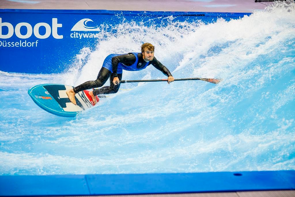 In hal 8b vinden we een groot zwembad van 65 meter, de staande golf ”THE WAVE” met golven tot 1,50 hoog en de winkels met de coolste boards en outfits van het moment.