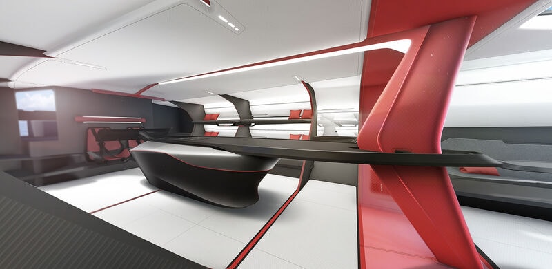 De boot maakt gebruik van foiling-technologie, vergelijkbaar met die van de America's Cup
