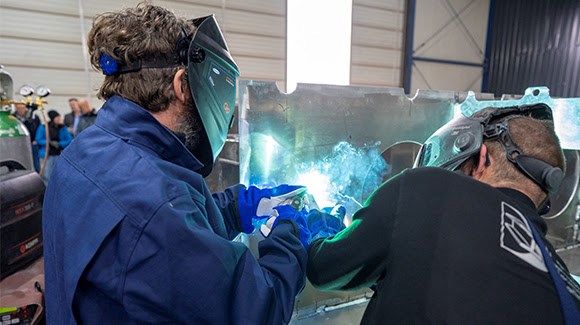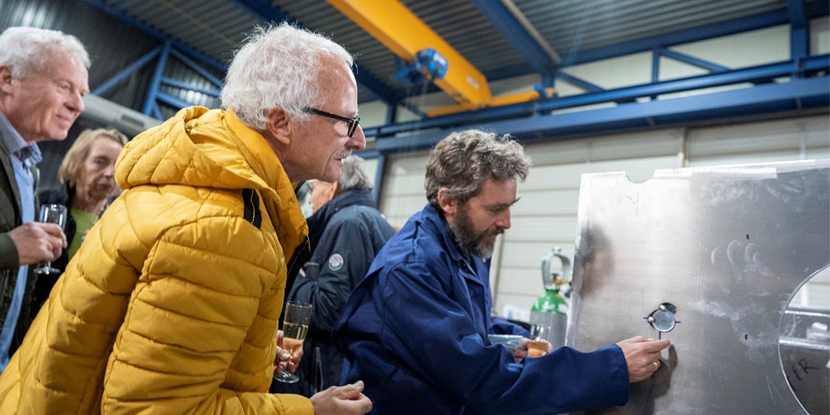 HARLINGEN- Bij N. Dijkstra Metaalbewerking in Harlingen vond deze week de feestelijke kiellegging plaats van het nieuwe nationale Wadden- en Delta-onderzoeksschip, de RV Wim Wolff. Hier wordt de aluminium romp gebouwd in opdracht van Thecla Bodewes Shipyards, de hoofdaannemer. Traditie wil dat op de kielbalk een muntje ‘voor goed geluk’ gelast wordt. Onder toeziend oog van de vele genodigden werd deze handeling verricht door Bram Fey, toekomstig schipper van RV Wim Wolff.