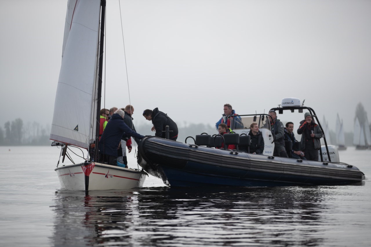 Op zaterdagochtend meldden de ruim driehonderd zeilers zich vol goede moed in de Oude Haven van Langweer. De windstille en mistige weersomstandigheden waren echter verre van ideaal voor een zeilwedstrijd. Na een aantal ‘dobber’-wedstrijden werd in de middag de race stilgelegd en werd alle hoop gevestigd op de tweede dag.