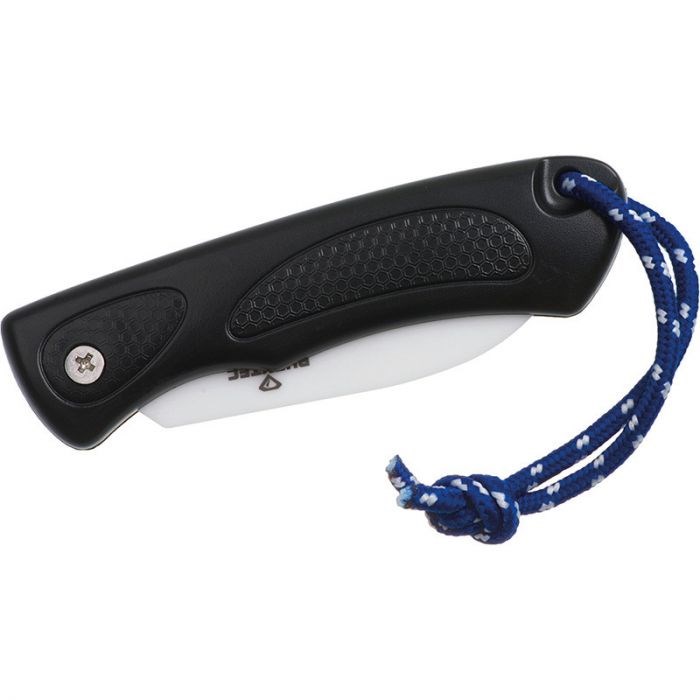 Ceram Foldable is een ultra-lichtgewicht mes dat makkelijk in een jas- of broekzak past, gemaakt van keramisch materiaal en voorzien van een handig ophangkoord. Keramische messen blijven langer scherp dan staal, zijn hygiënisch, worden niet aangetast door zuur, olie of zout en zorgen dat fruit niet verkleurt. Geen wonder dus dat deze messen steeds populairder worden. Het keramische materiaal (Zirkonium Oxide) wordt qua hardheid alleen door diamant overtroffen en dit geeft de messen uitstekende snij-eigenschappen en maakt ze zeer hygiënisch. Dit maakt ze ideaal voor gebruik op de camping of de boot. De Ceram Foldable heeft schroeven van rvs waarmee het vouwmechanisme van het mes strakker of losser gedraaid kan worden. Lengte: 15 cm.