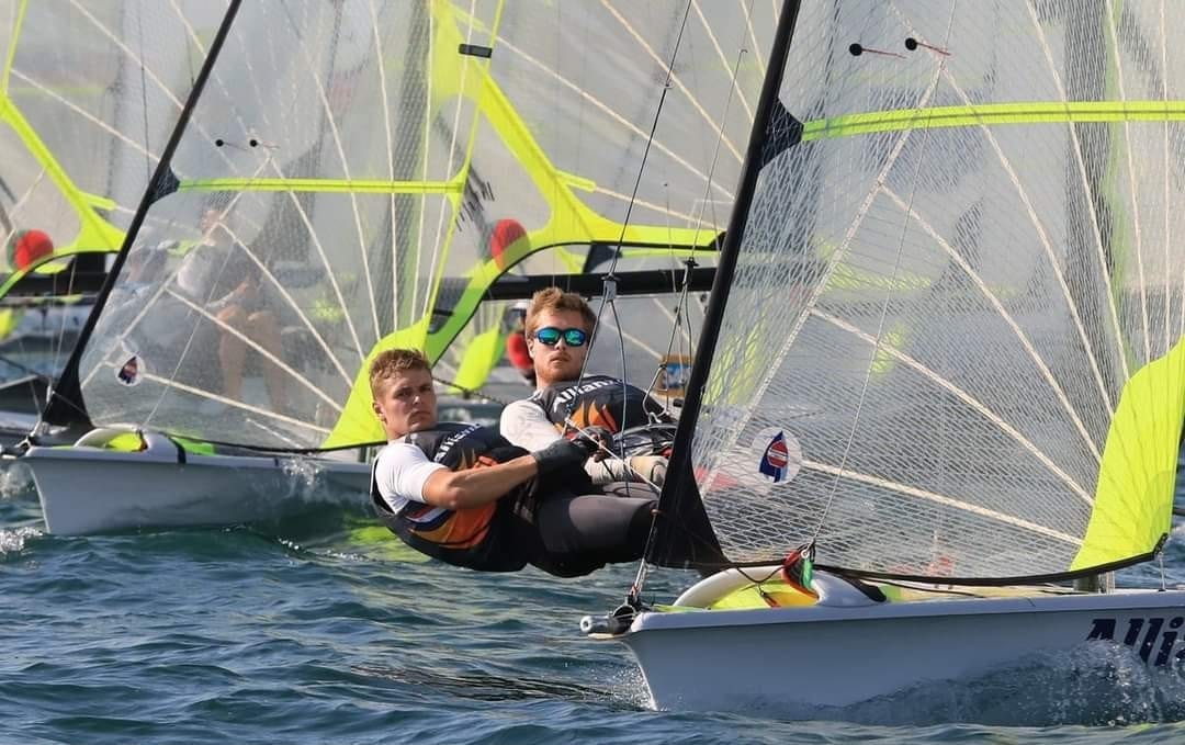 OMAN - Dubbel goud bij het WK 49er. Bart Lambriex en Floris van de Werken zijn zondag in Oman wereldkampioen in de 49er geworden. Elise de Ruyter en Odile van Aanholt pakten de titel in de 49erFX.