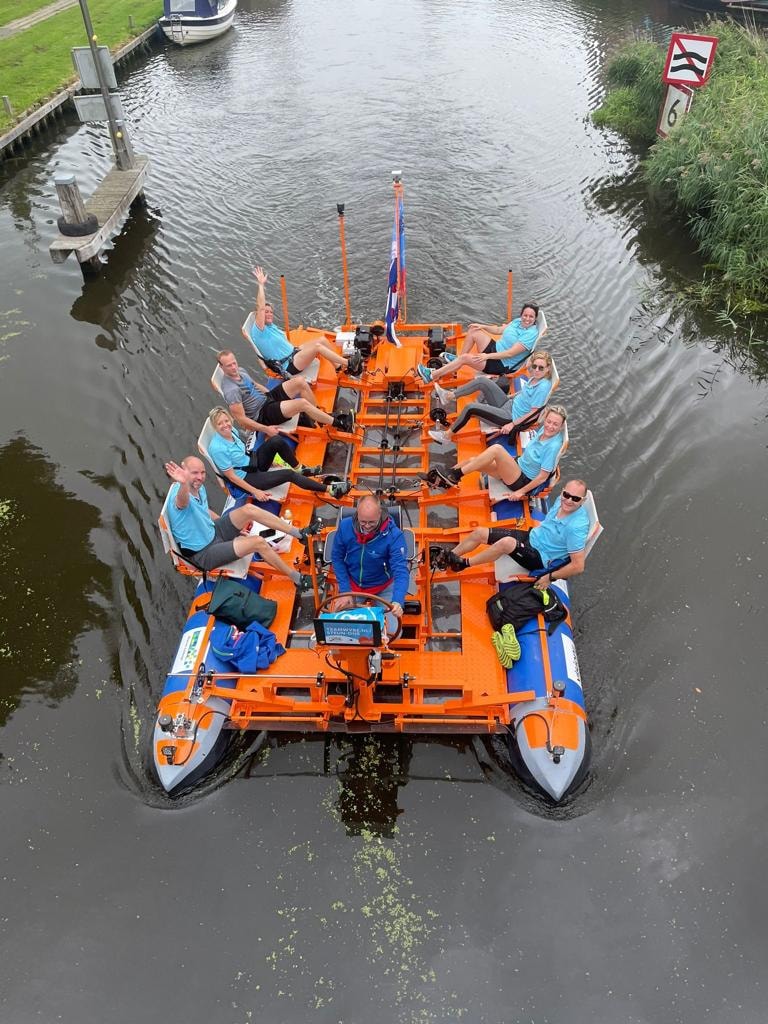 LEEUWARDEN- Team Wybe, opgericht in 2014 ter nagedachtenis aan Wybe Leenstra, gaat van 3 tot 5 juni met een zelfgebouwde 9-persoonswaterfiets de Elfstedentocht ’fietsen’. Naast het sportieve aspect, is het doel om zoveel geld bij elkaar te trappen voor de Maarten van der Heijden Foundation. De fiets staat al te koop.