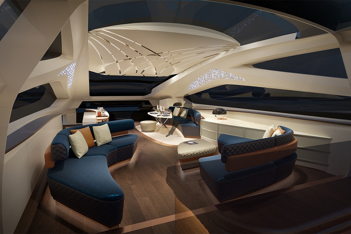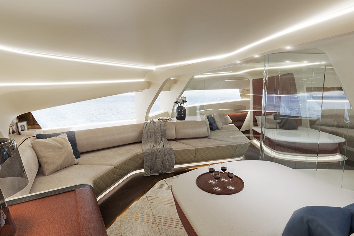 Bij aankomst in zijn zomerhuis wilde de eigenaar de tijd op het water maximaliseren aan boord van een boot die goed geschikt was voor binnenvaarttochten. Vripack bedacht een ontwerp voor het exterieur dat bestaat uit twee schuifdaken, een rondlopend dek, een lounge voordek en een zwemplatform achter. Het belangrijkste was dat de eigenaar comfort en stabiliteit eiste, zelfs bij hoge snelheden. Vripack voorzag in intrekbare foils die automatisch worden uitgeklapt rond de 20 knopen.