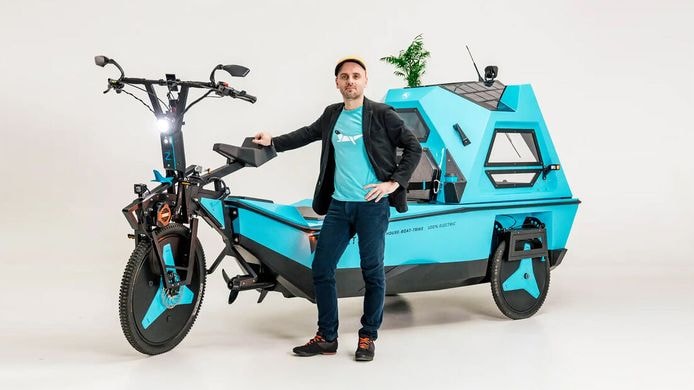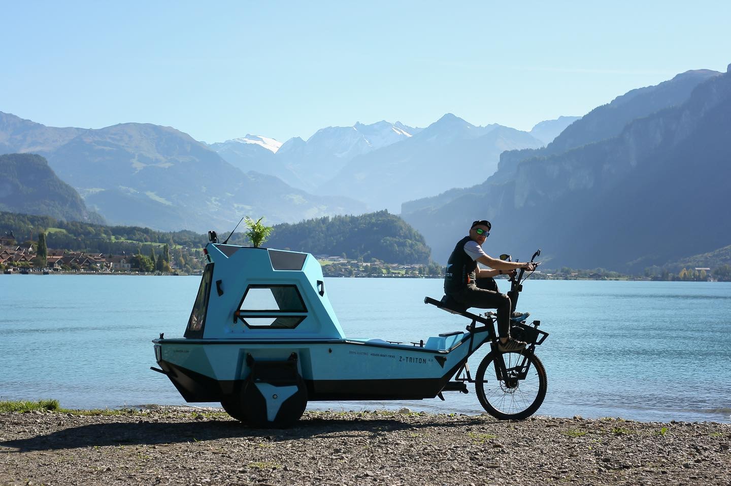 De Zeltine Z-Triton is snel om te bouwen van elektrische fiets naar elektrisch aangedreven boot, tot een caravan/camper voor twee personen. Met een volle accu hoef je tijdens het fietsen pas na zo’n 50 kilometer zelf te trappen. Als je wilt varen, dan moet je de wielen inklappen en de rubberen pontons opblazen. Een elektrische 12-volt buitenboordmotor zorgt voor de voortstuwing. Met een volle accu moet het op het water mogelijk zijn zo’n 20 km af te leggen. Als de accu leeg raakt, kun je de meegeleverde opvouwbare peddel gebruiken.