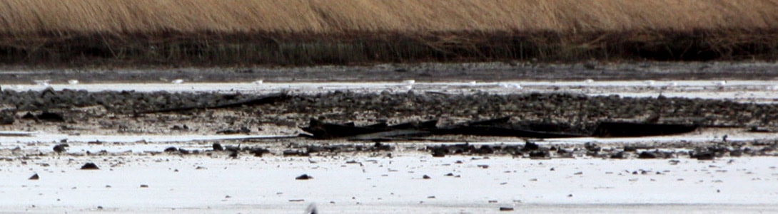 telelens van mijn camera zag ik de contouren van twee scheepswrakken vlak bij Hemmeland boven