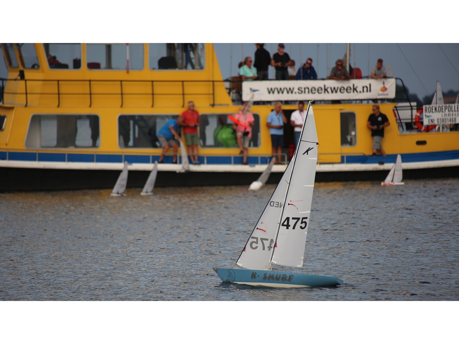 Daar is het weer opnieuw in de verf gezet: in de bekende geel/blauwe clubkleuren van de KWS. Nadat het weer te water was gelaten werd het overgevaren van Woudsend naar Sneek. Een mooie vaartocht waar Robbert Evers, lid van het mediateam van de Sneekweek, uitgebreid de tijd had om met schipper Jan Germen Geertsema te praten over de historie van de Roekoepolle. Voordat het als startschip werd ingezet had dit iconische schip namelijk een compleet andere functie.