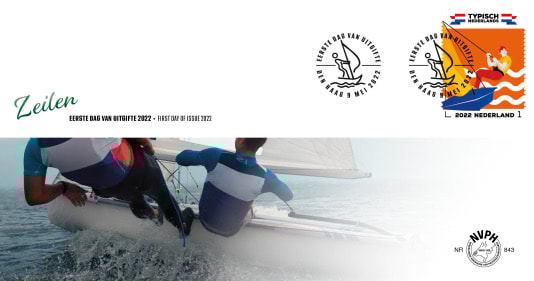 ROSMALEN- Zeilen is de vierde sport in de serie Typisch Nederlands van PostNL. De illustratie op de postzegel laat een zeiler in actie zien. Voor elke postzegel uit deze serie ontwerpt de Nederlandse Vereniging van Postzegelhandelaren een eerstedagenvelop en een themagebonden stempel. Als afbeelding op de eerstedagenvelop koos de NVPH voor een actiebeeld waarop twee zeilers in trapeze. Zowel de postzegel als de eerstedagenvelop zijn vanaf 9 mei 2022 verkrijgbaar.