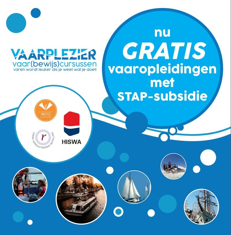AMSTERDAM- Met STAP-budget kun je gratis vaaropleidingen volgen, zoals ’medewerker watersportbedrijf’ of NauPro Vaarbewijs. Elke 2 maanden is er nieuwe kans op dit budget, de volgende ronde is op vrijdag 1 juli. Ga snel naar www.vaarplezier.nl/stap voor alle informatie.