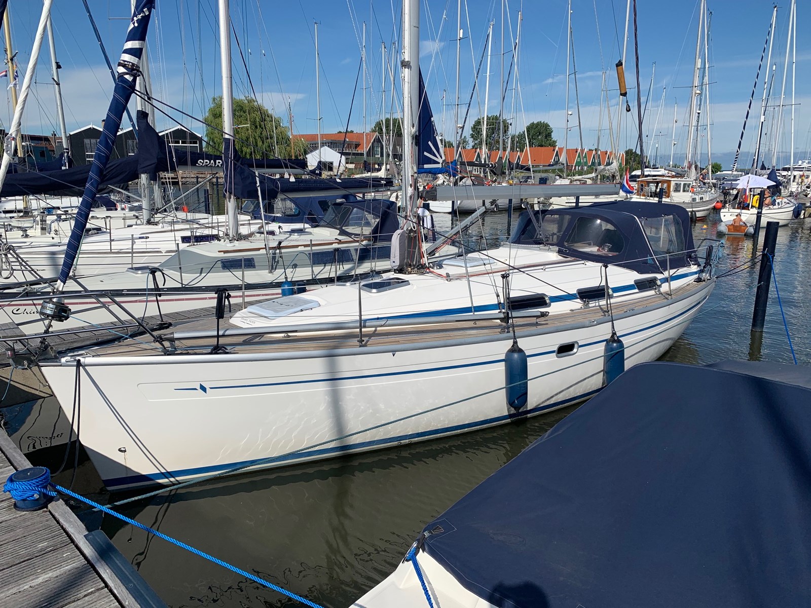 VOLENDAM- Deze mooie, ruime Bavaria 34-3 zeilboot uit 2000 met teak dek is een ideale familie cruiser. In deze comfortabele en goed onderhouden zeilboot is in 2021 en 2022 veel vernieuwd. Zoals een warm water boiler, gasfornuis met oven, acculader/omvormer, koelkast, toilet, nieuwe bekleding in de salon en achterhutten, slaapmatrassen in de voorhut, AIS, radio, USB-aansluitingen, bilgepomp, wandspanners, acculader, zeerailing, muggenhoren en verduistering. Verder zijn alle lijnen, fenders en landvasten vernieuwd. Een nieuwe set zeilen uit 2018 is voor het eerst gebruikt in 2021. De Volvo Penta MD2030 motor heeft in 2021 groot onderhoud gehad.