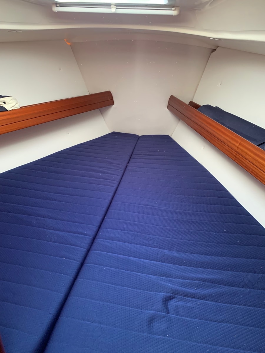 Er zijn zes vaste slaapplaatsen in de drie dubbele hutten. De natte cel ligt voorin naast de voorhut en in het achterschip zijn de twee andere dubbele hutten.