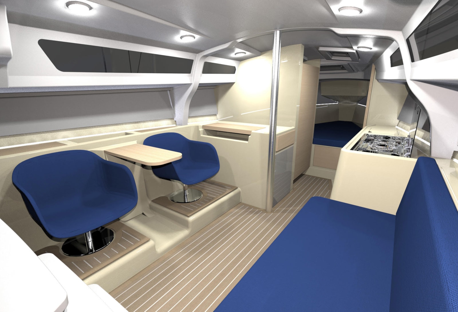 Met het ontwerp van de Pointer 30 stond een comfortabele werkplek en een fijne koffiebar met een goed bereikbare keuken voorop. Het elegante ontwerp belichaamt modern comfort en luxe. De stijlvolle Pointer 30 is een innovatief ontwerp met exclusieve roterende fauteuils voor optimaal comfort. Benedendeks zijn er 4 ruime slaapplaatsen ieder met een lengte van 2.10m. Er is een afgesloten toiletruimte en een aparte tweepersoons hut aanwezig.