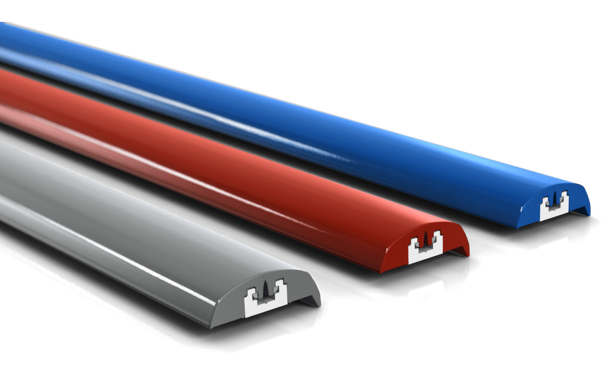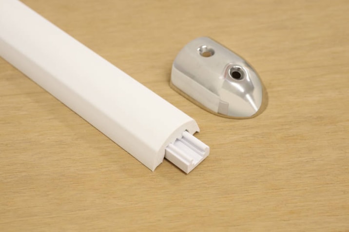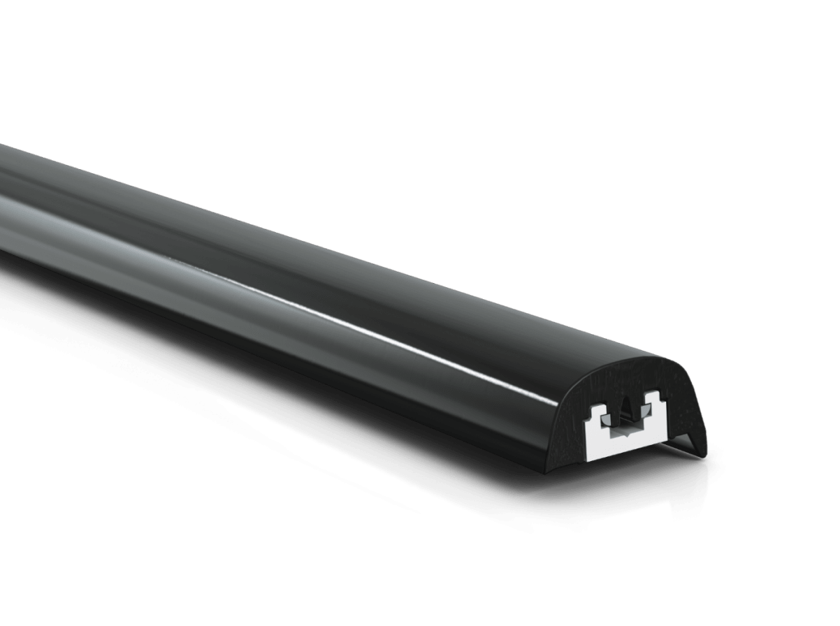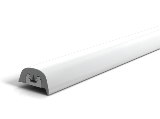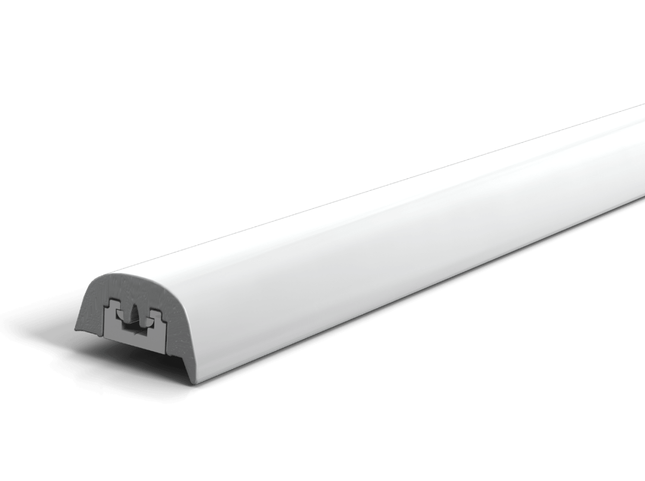 Het systeem bestaat uit een hard pvc-montagerail en een flexibele UV-gestabiliseerde PVC-body. Door kleine hard pvc-stripjes in de verder flexibele pvc-stootrand klikt u het profiel simpelweg in de hard pvc-montagerail vast.