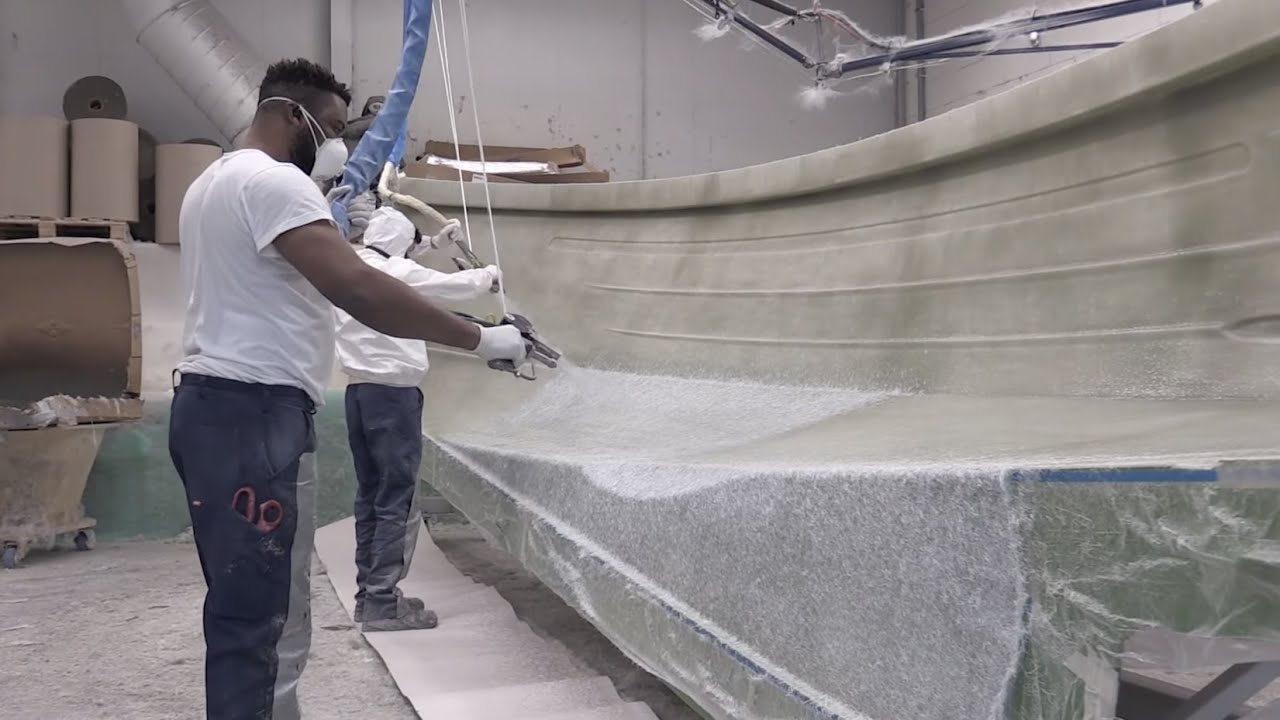 Nadat de plug en mal klaar zijn worden die naar Zwaag gebracht. Daar worden de rompen van alle modellen van Aquatec gemaakt in de eigen polyesterfabriek. Dat blijkt echt teamwerk te zijn. Voor de afbouw en installatie van apparatuur en motoren worden de sloepen naar Woudsend gebracht.
