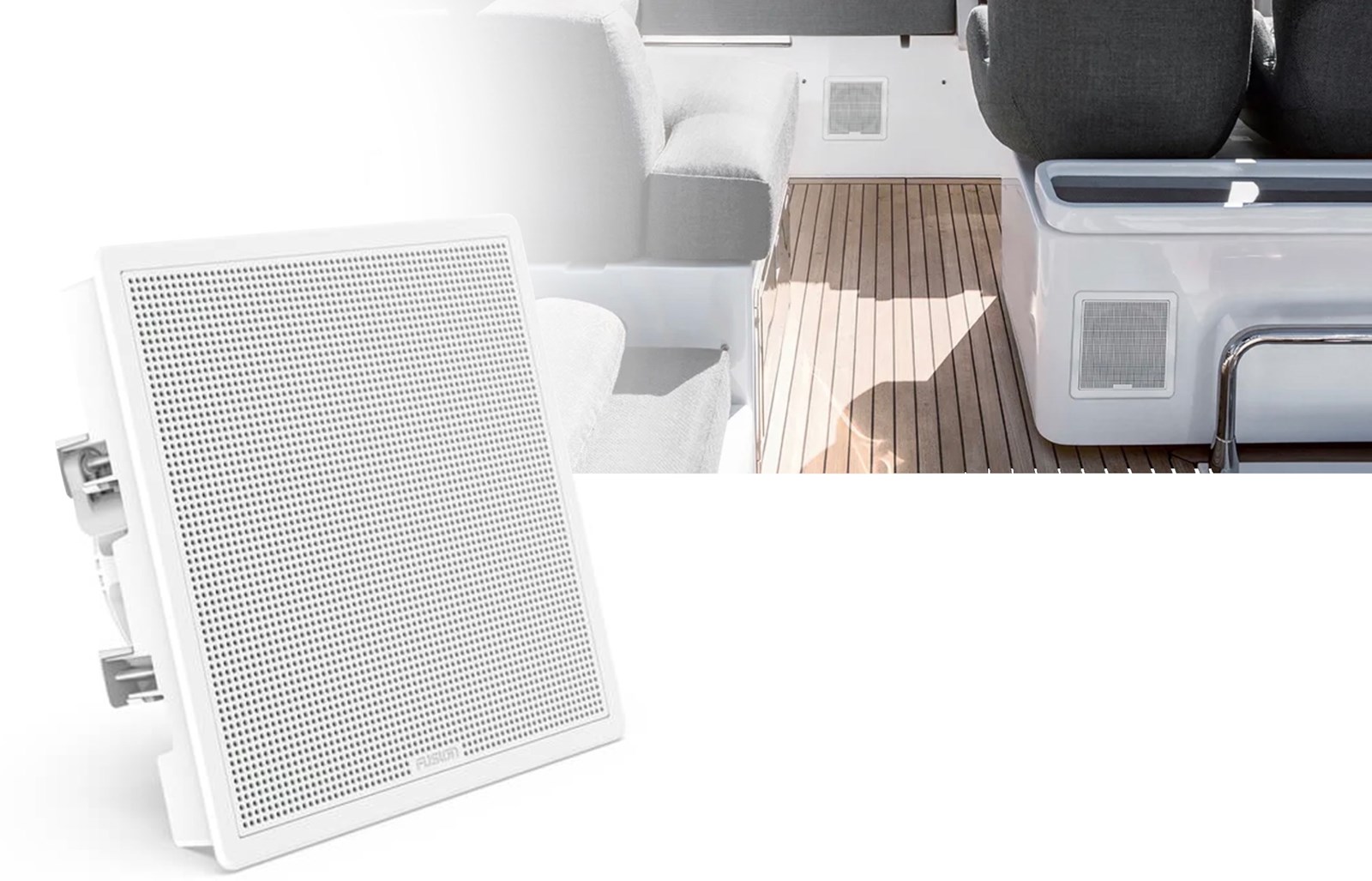 De luidsprekers en subwoofers uit de FM serie bevatten een verzonken montage met een montageprofiel dat niet dikker is dan 2,5 mm voor een visueel aantrekkelijke, bijna vlakke afwerking. Door de slanke en minimalistische vormgeving passen de luidsprekers uit de FM serie naadloos bij je boot.