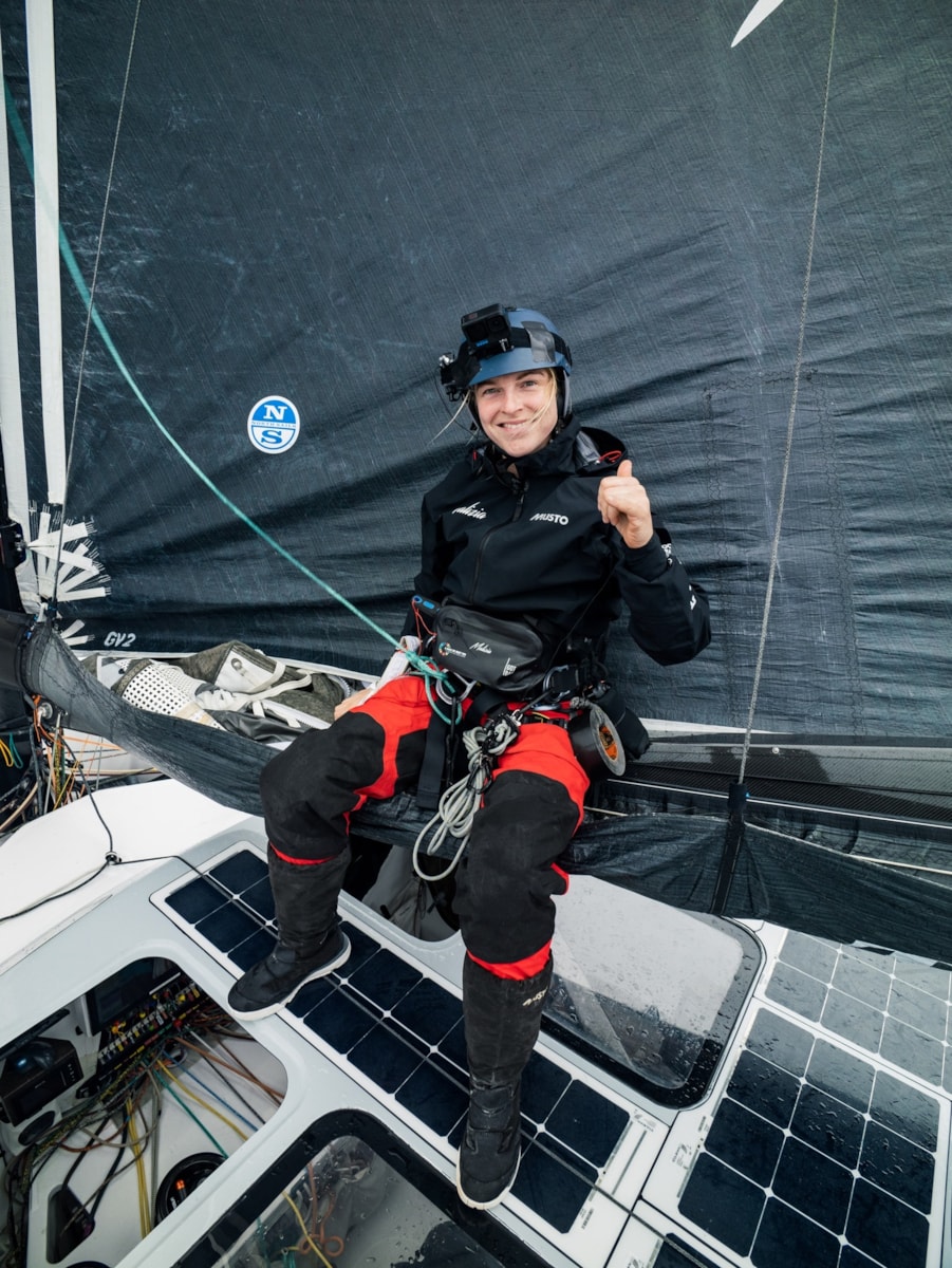Eerder deze week werd er een scheur in de mast ontdekt. De afgelopen 12 uur heeft het Team Malizia hard gewerkt om alle andere reparaties in orde te krijgen terwijl ze niet op volle kracht kunnen zeilen. Dit zou moeten betekenen dat zodra de reparatie volledig is uitgehard Malizia - Seaexplorer weer 100% is (minus het gescheurde C0-zeil). Vanaf 08:45 UTC heeft co-schipper Rosalin Kuiper vanmorgen twee en een half uur in de mast gezeten in een ruwe zeegang met ongeveer 20 knopen wind om de reparatie af te maken. Ze schuurde een deel van het gerepareerde gebied weg en ging daarna aan de slag om het nieuwe slot aan de val te bevestigen, geen gemakkelijke klus, bungelend op 28 meter.