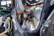 Voordat het gedelamineerde gedeelte van buitenaf kan worden geopend, heeft het technische team het binnenste gedeelte versterkt met carbonlaminaat. Woensdag wordt de buitenste koolstoflaag van de romp opengesneden en de Nomex-kern verwijderd. De binnenste koolstoflaag blijft. De honingraatstructuur wordt vervangen door een sandwich schuimkern, die donderdag op zijn plaats wordt gelijmd.