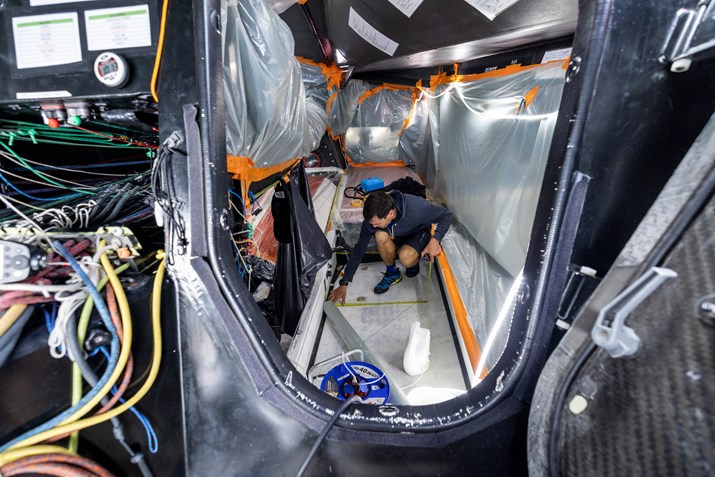 Thomas Cardrin, hoofd van het technische team van GUYOT environnement - Team Europe, verwacht dat de IMOCA na de reparaties weer 100 procent belastbaar is.