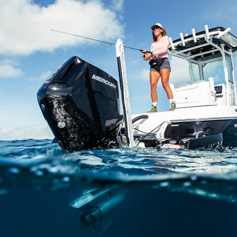 De Mercury 5.7L V10 350 en 400pk Verado buitenboordmotor is ontworpen op basis van het concept van een monoliet, een verfijnd, ambachtelijk, schoon, gedurfd en iconisch ontwerp. De V10 combineert een eersteklas uiterlijk met uitzonderlijk vermogen en technologie die precies aansluit op de behoeften van de consument.