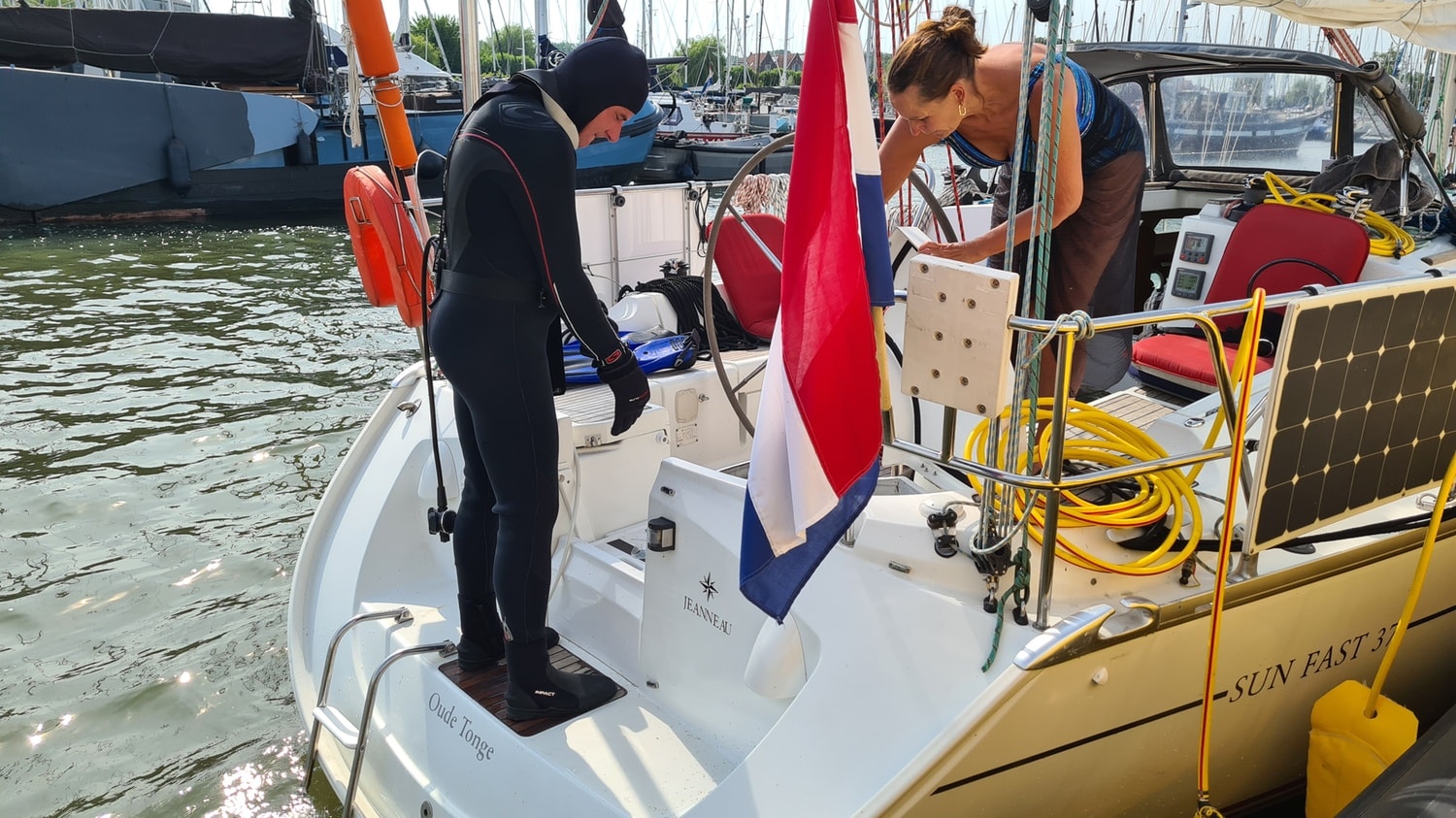 in de haven en ze bood aan dat haar man André wel even onder het schip wilde kijken zodra we