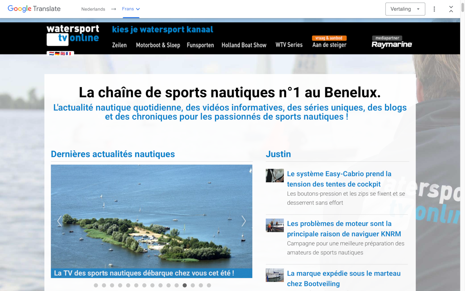 ’’We zien dat series zoals ’Holland Vaart’, waarvoor we allerlei vaargebieden belichten, zeer populair zijn bij onze buitenlandse kijkers. De serie geeft een mooi beeld van de watersportbeleving in Nederland. Maar ook ons dagelijkse watersportnieuws wordt goed bekeken. Een goede reden om een vertaalfunctie aan onze site te verbinden, zodat de buitenlandse bezoekers direct in de gewenste taal de berichten kunnen lezen.’’