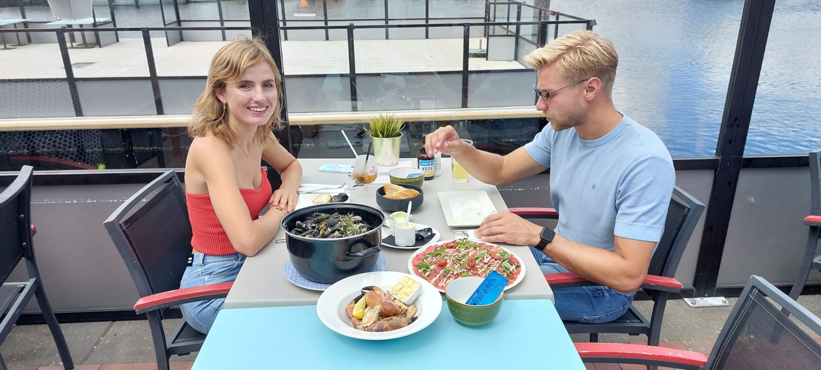 We hadden afgesproken met Juliet en Niek. Een jong stel dat de watersport mogelijkheden op en rond de haven ging ontdekken. We waren aanwezig bij het admiraalzeilen bij de zeilschool zaterdag. Het grootste zeilkamp van dit seizoen werd hiermee afgesloten onder toeziend oog van de ouders van de kinderen. Tussen het zeilen en suppen door brachten we een bezoek aan de Visserijdagen.