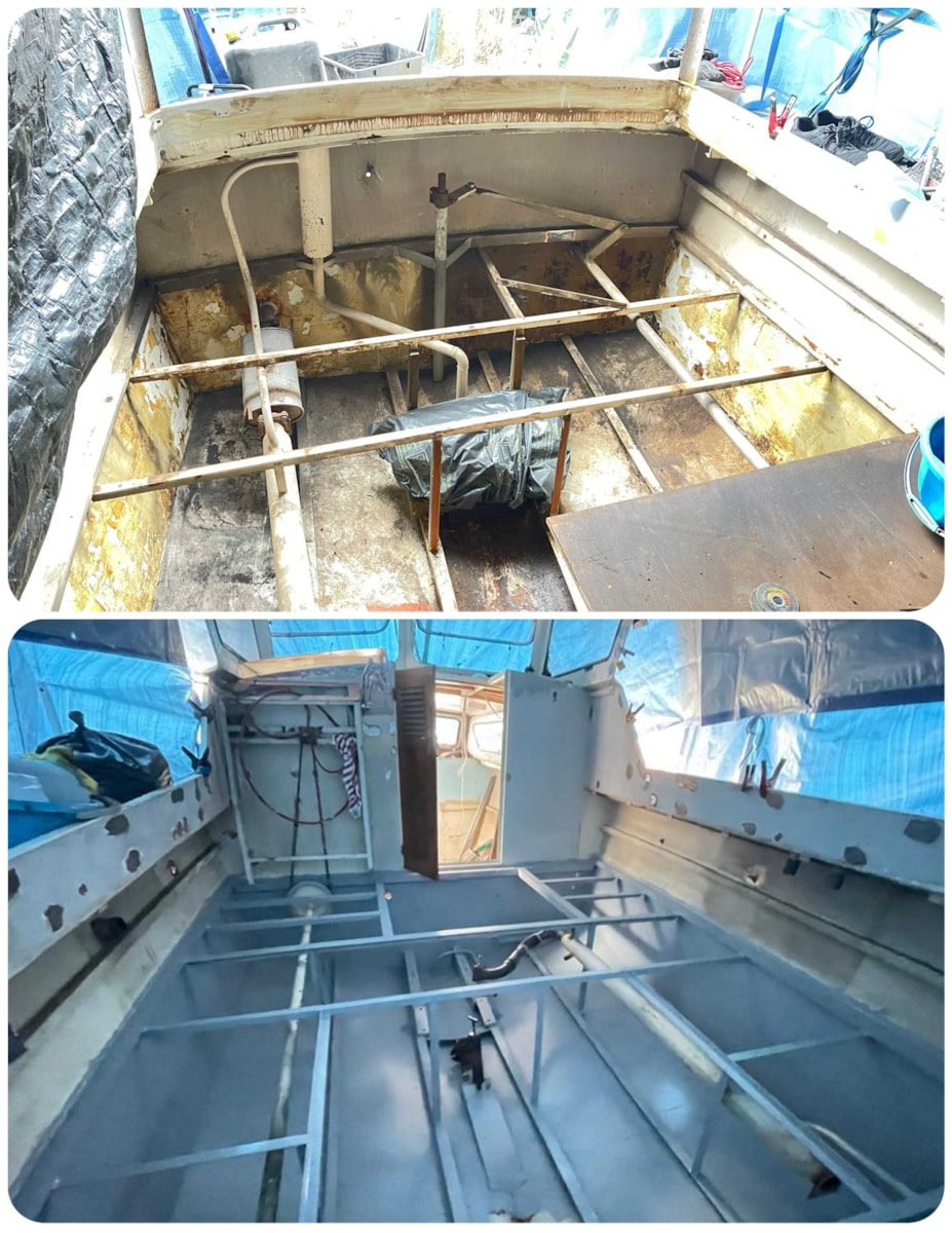 Het begon met een dikke tegenvaller! Tijdens het ontroesten van de bilge voorin, waar hij verwoed