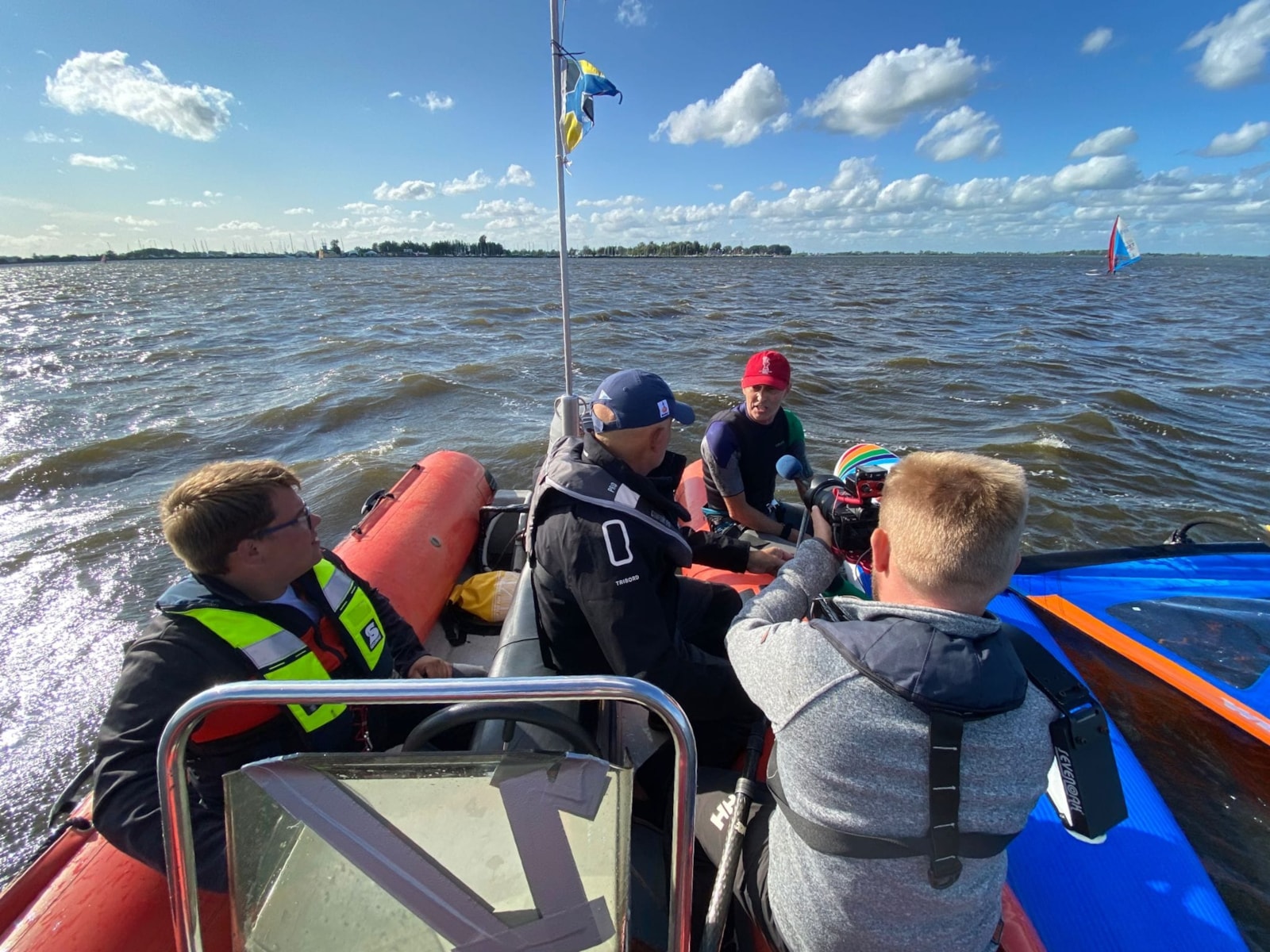 Om op het water onze opnames te kunnen maken, vaart al vele jaren Hein ons rond met zijn RIB. Hein behoort tot het ’interieur’ op het starteiland en als hij ons niet vaart, is hij druk met andere vrijwilligers in de Roerkoning. Het wedstrijdzeilcentrum op het starteiland, waar zeilers voor en na de wedstrijden een kopje koffie kunnen drinken of een zelfgemaakt soepje kunnen gebruiken.