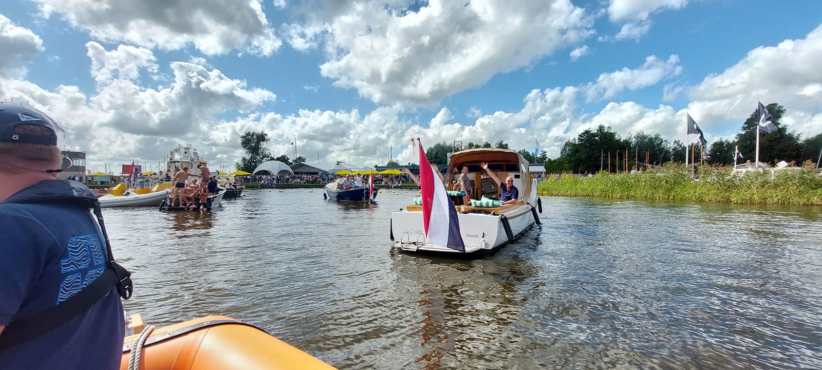 De voorlaatste dag van de Sneekweek, de traditionele hardzeildag...met prima omstandigheden om te wedstrijdzeilen, muziek en gezelligheid na afloop op het starteiland, de huldiging van Panschipper Harry Amsterdam en skûtsjesilen in Terherne.