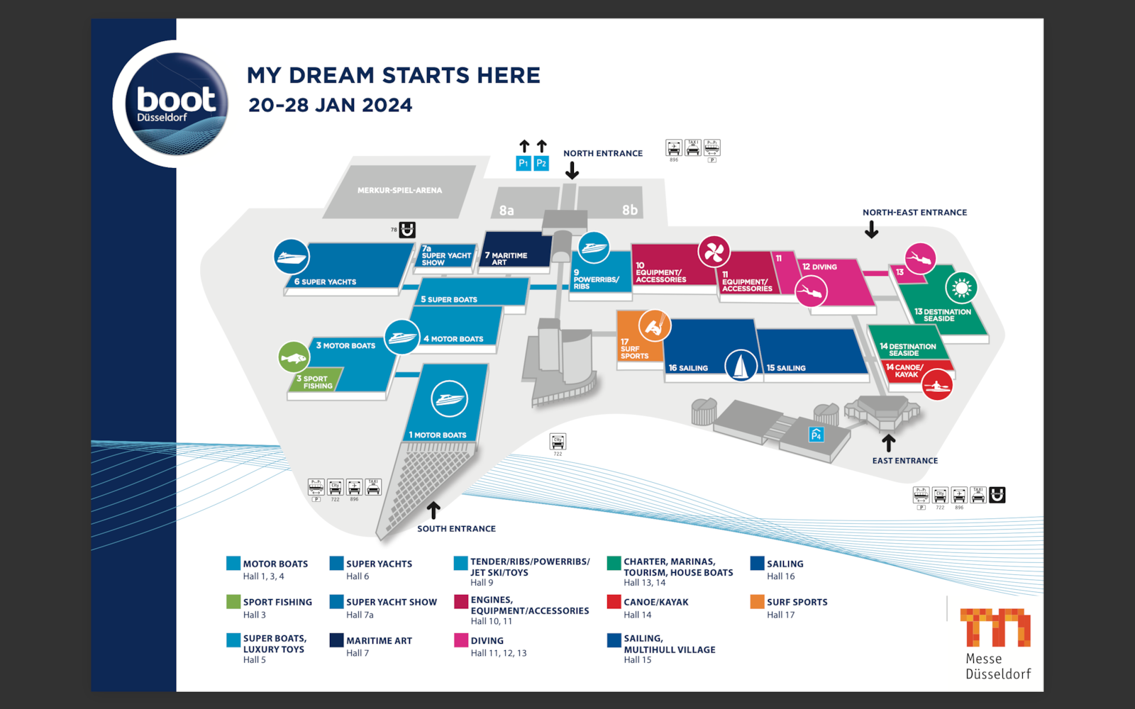 DUSSELDORF- Boot Düsseldorf betekent voor veel watersportliefhebbers de warming-up voor het nieuwe seizoen. Wie de beurs weleens heeft bezocht, weet dat het verstandig is om thuis een plan te maken van wat je allemaal wilt bekijken. In de 17 hallen van de Messe is namelijk zoveel te zien. Om het je wat eenvoudiger te maken geven we je alvast een rondleiding. De 55e editie wordt gehouden van 20 tot en met 28 januari.