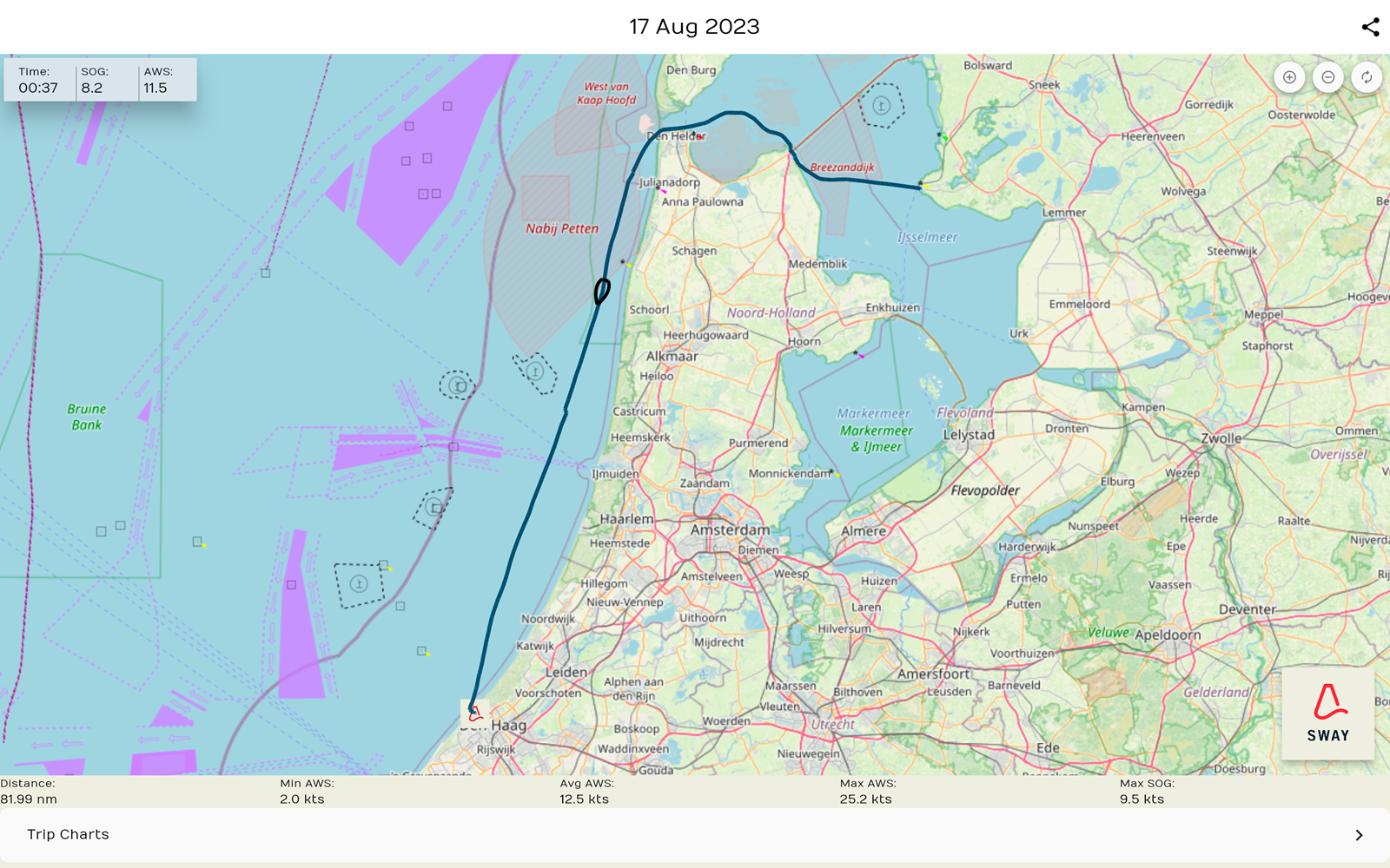 DEN HAAG- Met SWAY bekijkt, deelt en evalueert iedere zeiler eenvoudig zijn gezeilde trips. De app logt de gezeilde mijlen automatisch waardoor deze snel terug te kijken zijn. Track zeiltrips, deel ze met bemanning, vrienden en familie en herbeleef zeilavonturen. SWAY is een soort Strava voor het zeilen!