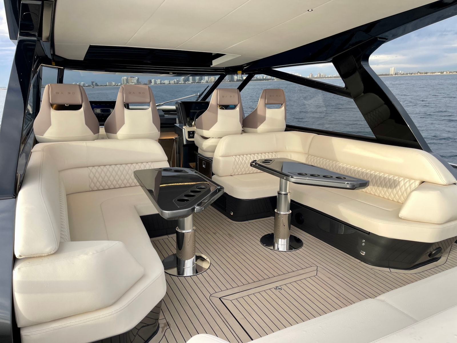 De DA53 heeft twee tweepersoonsslaapkamers, waarvan de ouderslaapkamer midscheeps ligt met een Frans tweepersoonsbed. Glazen ramen in de romp bieden een perfect uitzicht op zee bij het ontwaken. De ’T-top/hardtop in één’ functie en het intrekbare glazen plafond boven het voorschip geven haar eigenaren de flexibiliteit om de karakteristieken van het jacht gemakkelijk aan te passen aan alle weers- en zeeomstandigheden.