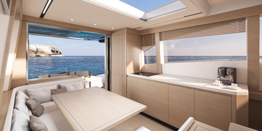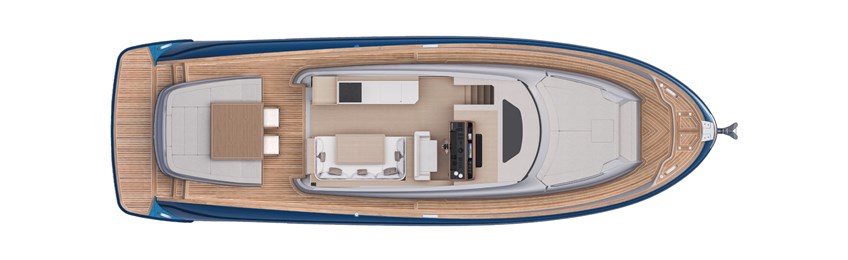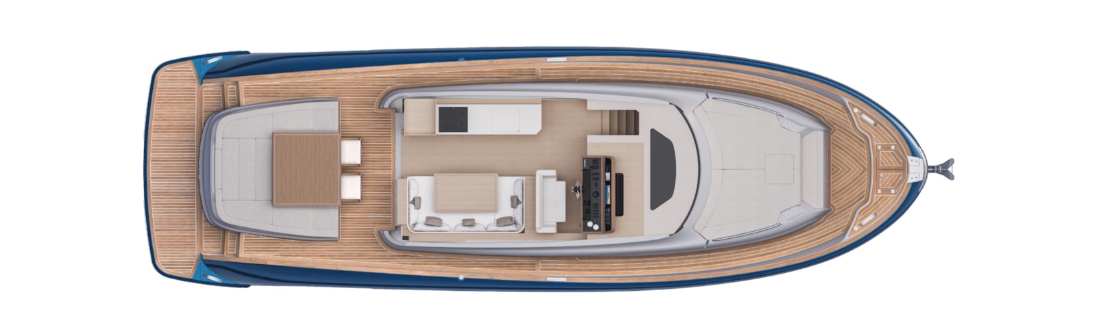 De uitgangspunten van de Italiaanse werf bij de ontwikkeling van elk nieuw model zijn altijd hetzelfde: zeewaardigheid, veiligheid en functionaliteit. De traditionele ‘walkaround’ is daar een goed voorbeeld van. Zonder obstakels rondom de boot je voortbewegen over een ruim gangbord met een hoge verschansing, dat is niet alleen praktisch maar ook veilig.