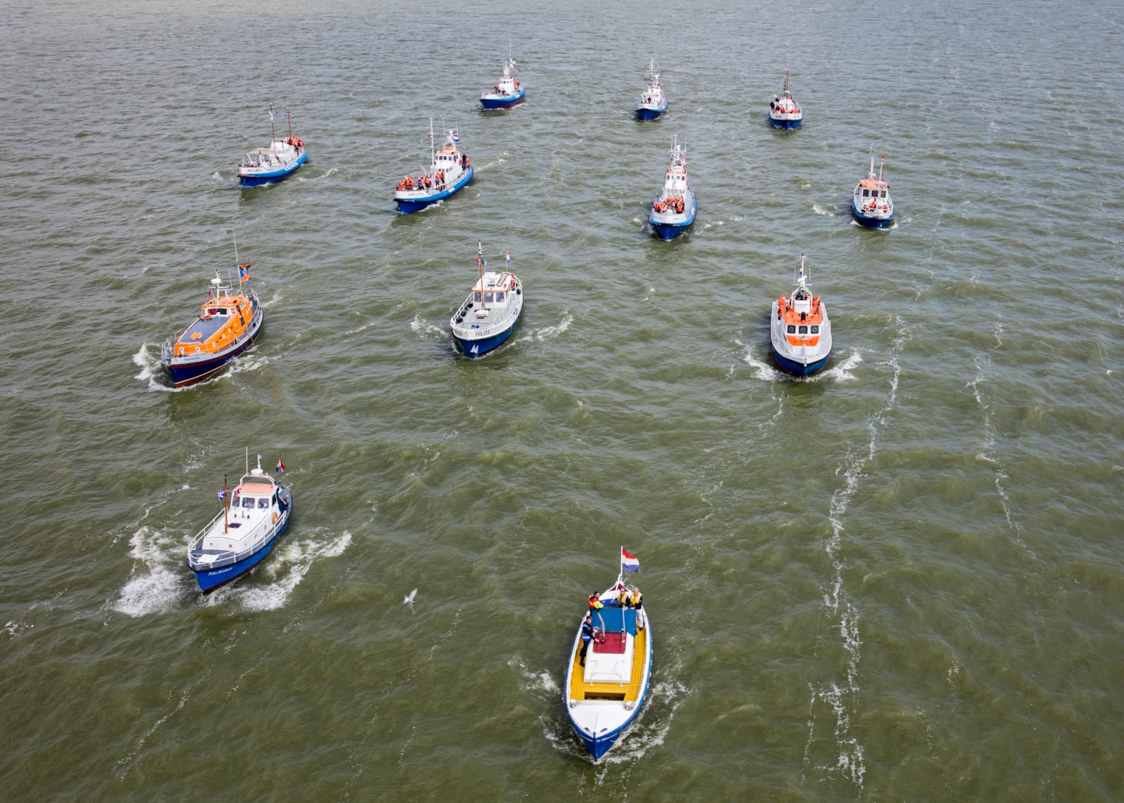 Parade van reddingboten vaart van IJmuiden naar Amsterdam