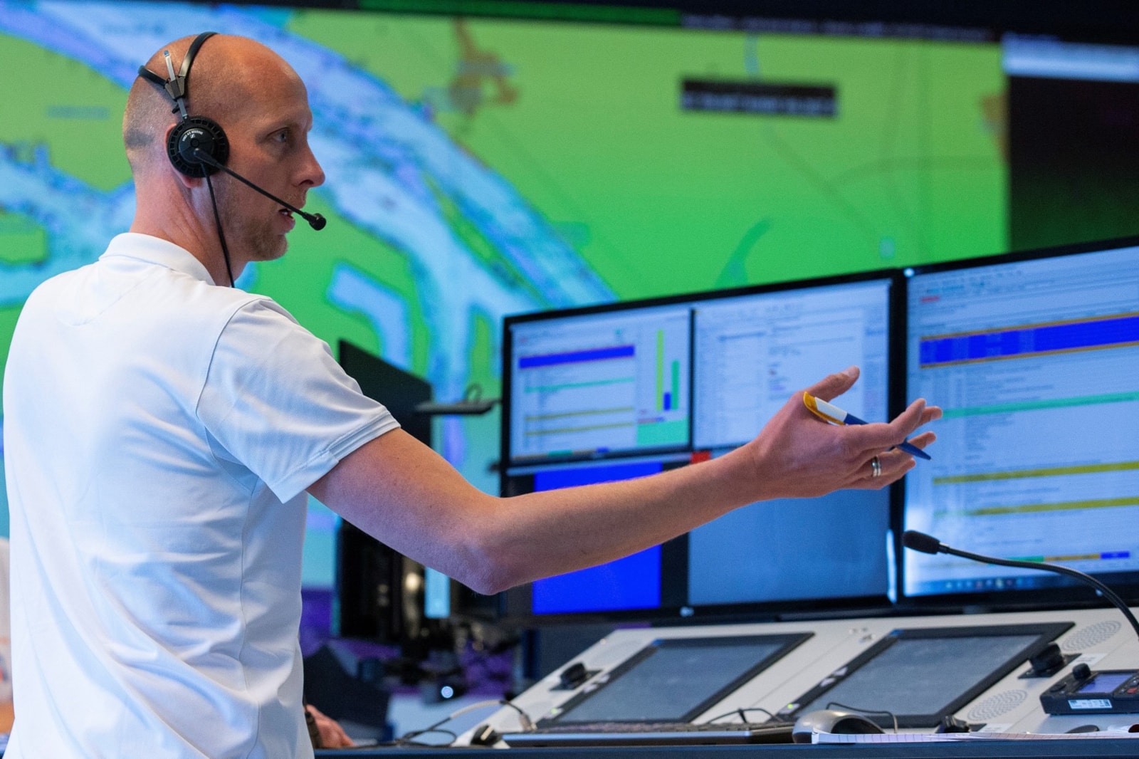 Tijdens deze grootschalige evacuatieoefening werken verschillende hulporganisaties samen om de opvarenden van de DFDS-ferry ‘Princess Seaways’ in veiligheid te brengen. Uiteindelijk brengen we al die opvarenden aan land. Daarvoor zetten we onder andere meerdere schepen, reddingboten, helikopters, een vliegtuig, ambulances, (hulpverlenings)voertuigen, meldkamers en crisisteams in.