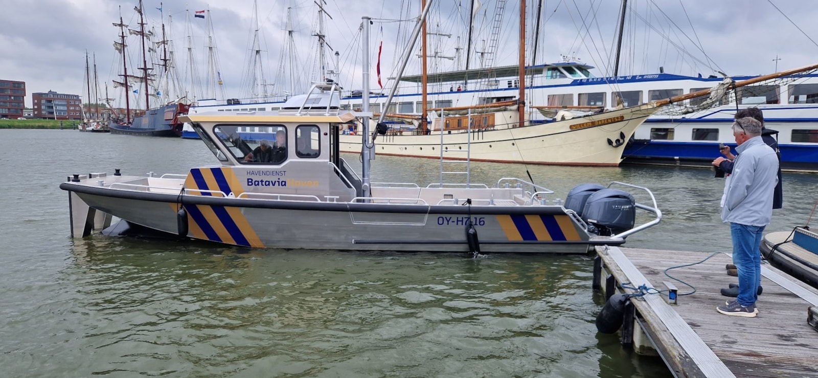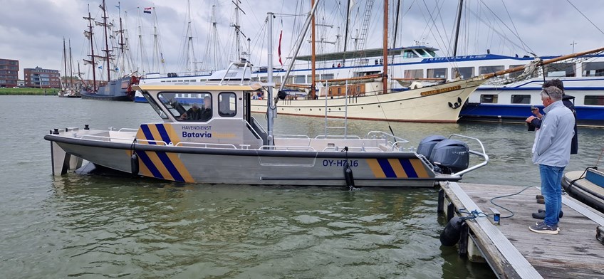 LELYSTAD - De havenmeesters van de Bataviahaven in Lelystad hebben hun nieuwe aluminium havenboot in ontvangst mogen nemen. De oude havenboot voldeed al enige tijd niet meer aan de te stellen eisen en in samenwerking met de bouwers van KD Workboats op Urk is een op maat gemaakte boot gebouwd in aluminium.